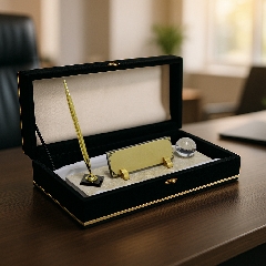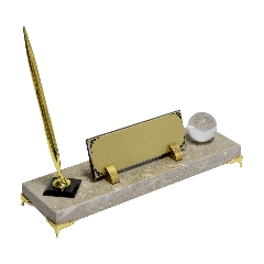 İş dünyasında etkileyici bir ilk izlenim bırakmak için özel olarak tasarlanan Masaüstü İsimlik Seti, lüks ve zarafeti ofisinize taşıyor. Mermerin doğal şıklığını, altın renkli ve kristal detaylarla tamamlayan bu set, güçlü bir duruşun simgesi olacak.